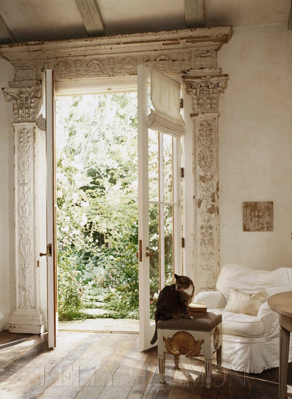 The above is something absolutely beautiful. Perhaps not being able to copy-paste those door frames, it might work to create the same atmosphere with some wall paper and an antique mirror. Do you think it would work?